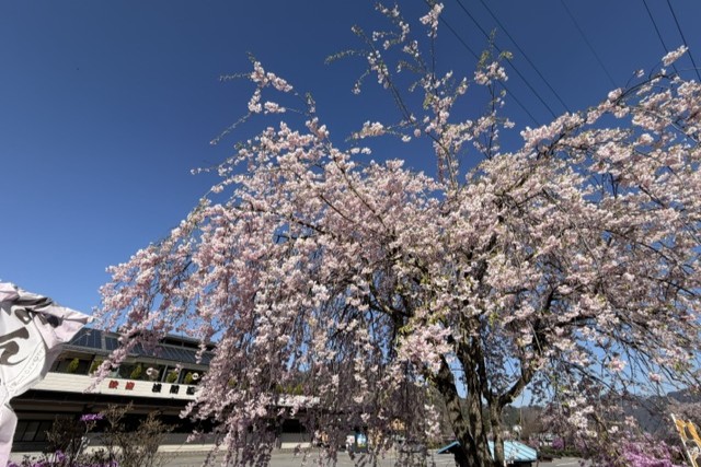 先日立ち寄った浅間酒造観光センターでは、ちょうど桜が見頃を迎えていて、思わず足を止めてしまうほどの美しさでした。