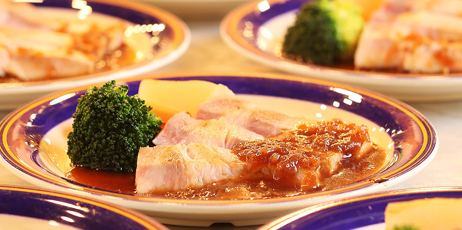 | 中華 | 海老チリ・麻婆茄子・焼豚の豆鼓炒め・中華クラゲ・フカヒレスープ |