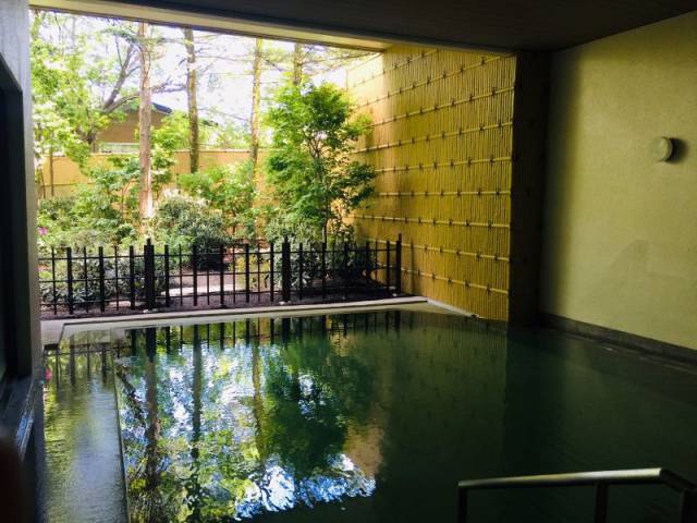 新緑の庭を見ながらたっぷりの源泉をご堪能ください。